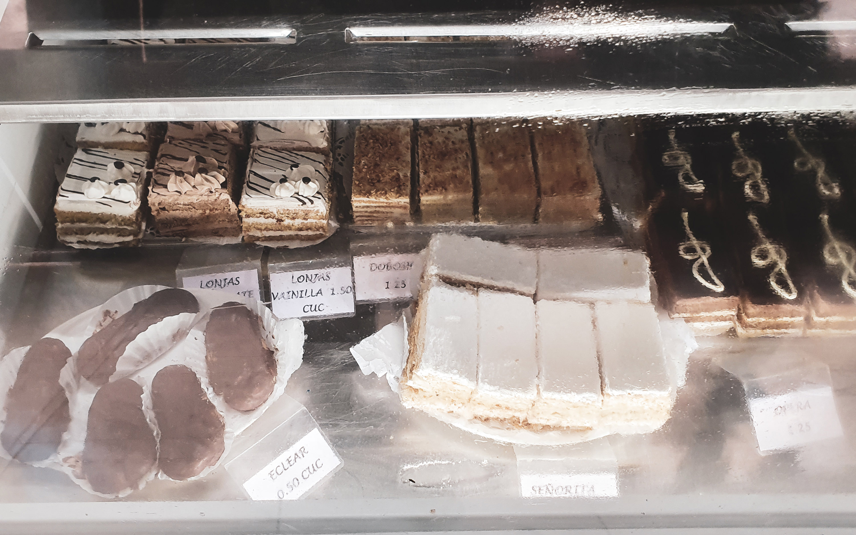 Cukiernię Dulcería La Especial de Compostela odkryliśmy blisko restauracji La Calesa Real. Zazwyczaj czekała tutaj propozycja 3-5 ciastek. Wizyta pozwalała podładować baterie i odwlec głód i ciepły posiłek o kilka godzin tanim, jak na Kubę, kosztem, bo od 0,7 CUC.