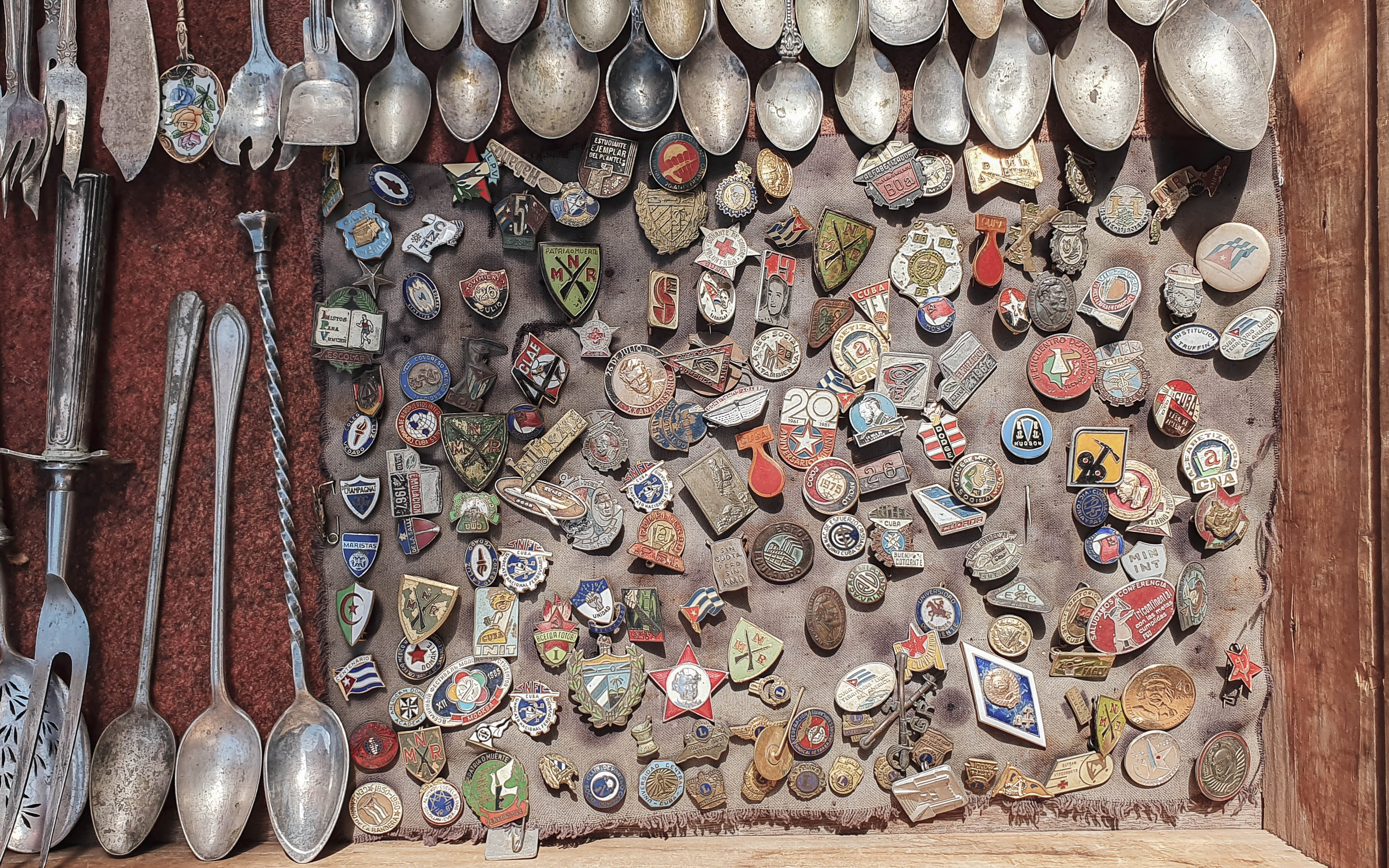 I discovered several antiques booths quite accidentally in a other place than the guide suggested. If it haven’t been here just for a while, you’ll find the flea market between Saint Francis of Assisi Square and the Sierra Maestra Terminal, with the entrance to the alley from San Pedro Street. The stands are piled with books, magazines and comics in different languages, license plates (sellers suggest original), jewelry and small items.